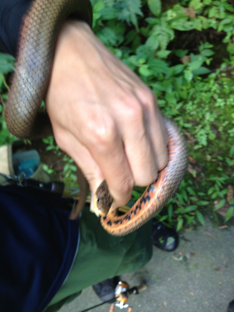 帰りしなに居た蛇を爽やか笑顔で鷲掴み!!