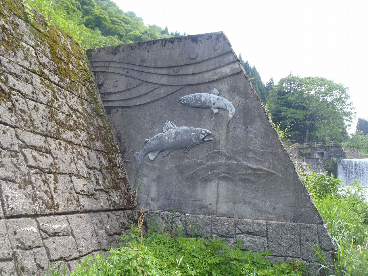 しばらく釣り登って堰堤付近でようやく魚影が見えた。