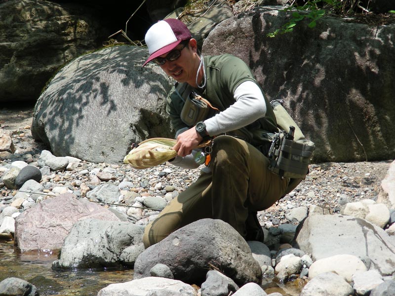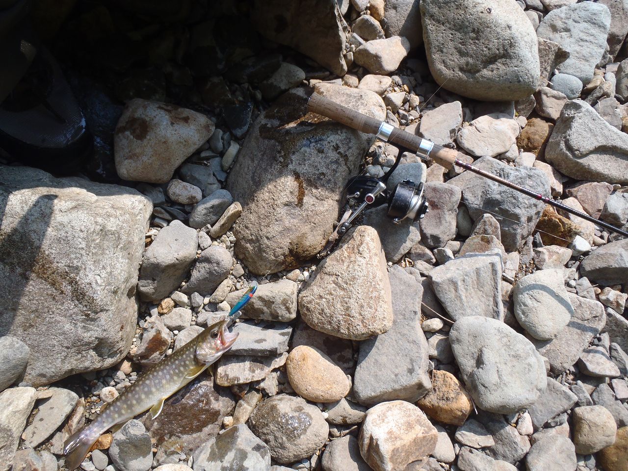 そして釣れたイワナをウェストバックに入れようとした時にミノー見つかる!(藁藁藁)