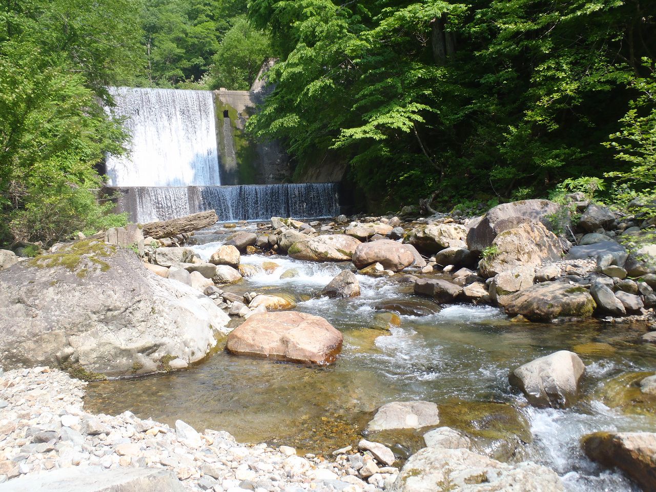 で、その挙句、堰堤下大淵の対岸にルアー引っかかり、折れた穂先がゴンドラ状態で向こう岸へ。。。(爆爆爆)