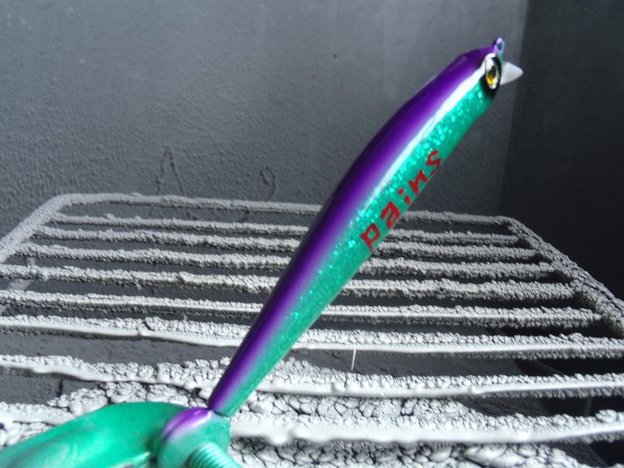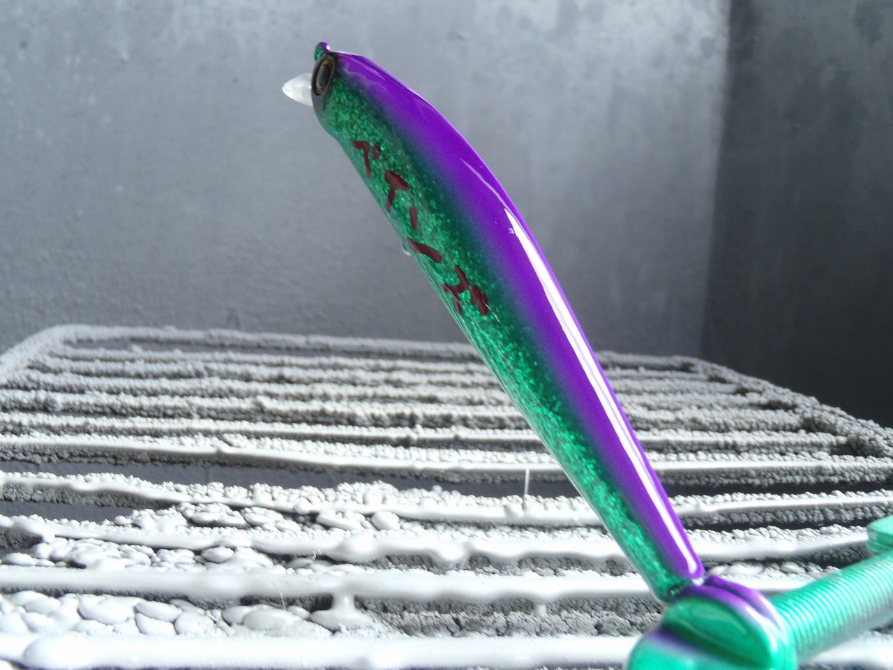 知らないルアーの方はバス用やけど黒鯛に使うらしく、スケルトンの西瓜(すいか)にして欲しいとの事。