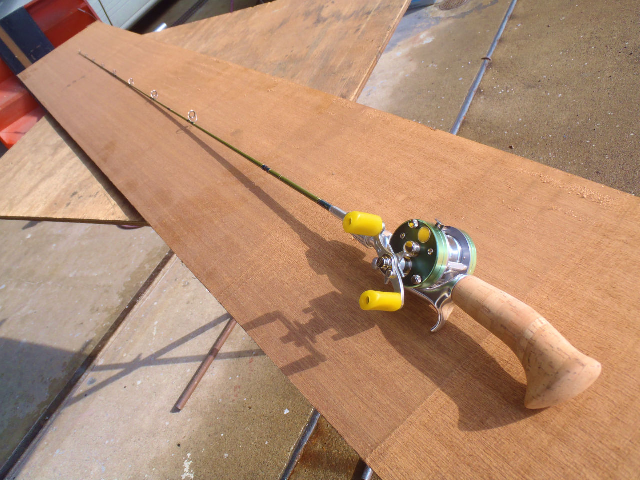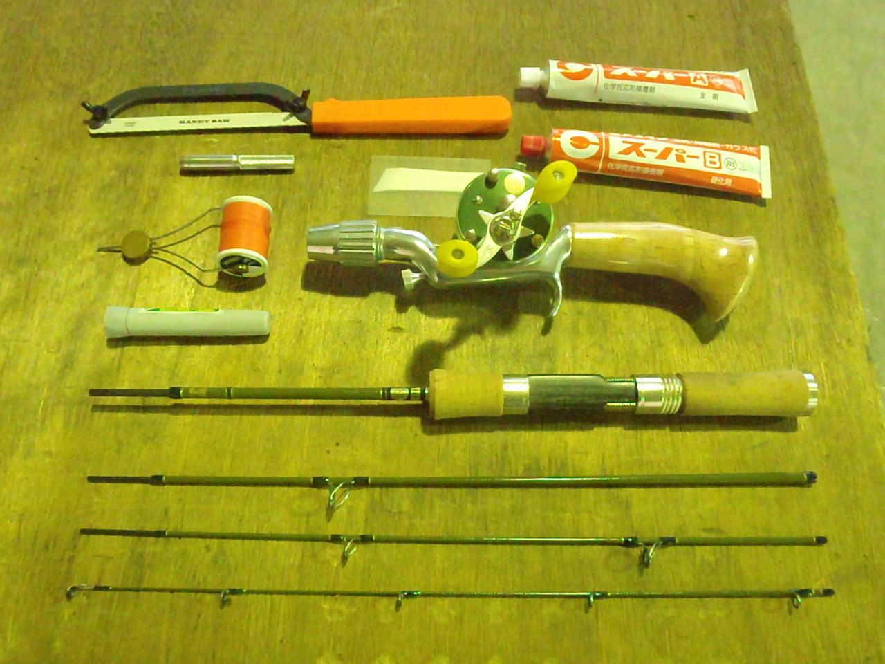 上の写真のパックロッド。ガイドは去年の春にJustaceにてベイト仕様に変更済み。