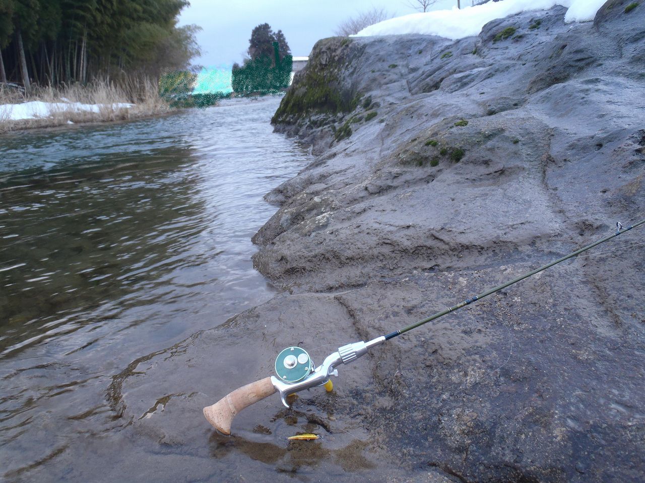 そして近所の小川へ試し投げ。。。