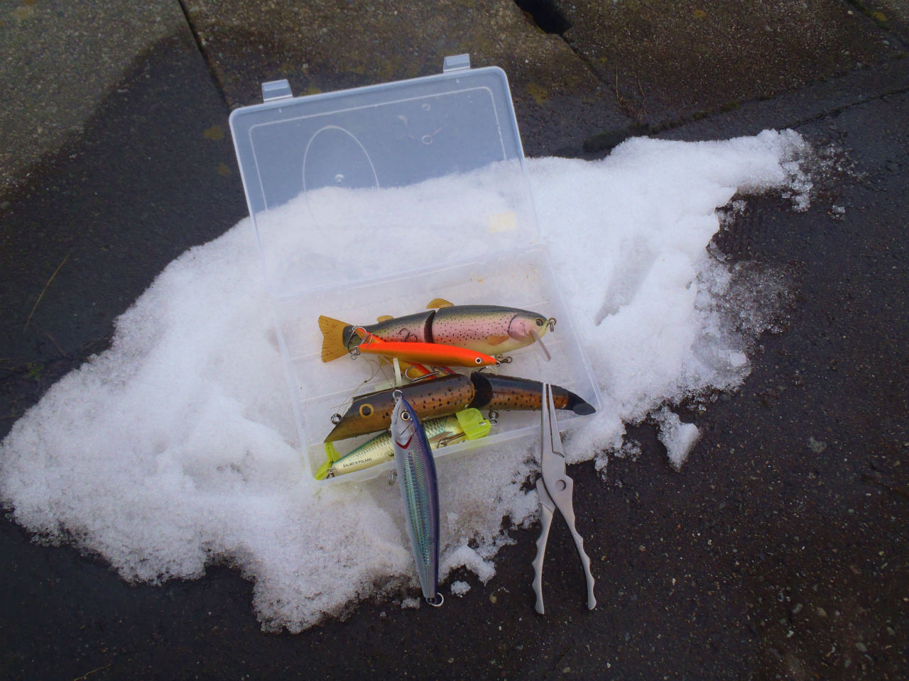 仮想鱸。(と言いつつ桜鱒っぽいルアー選んだのは内緒)